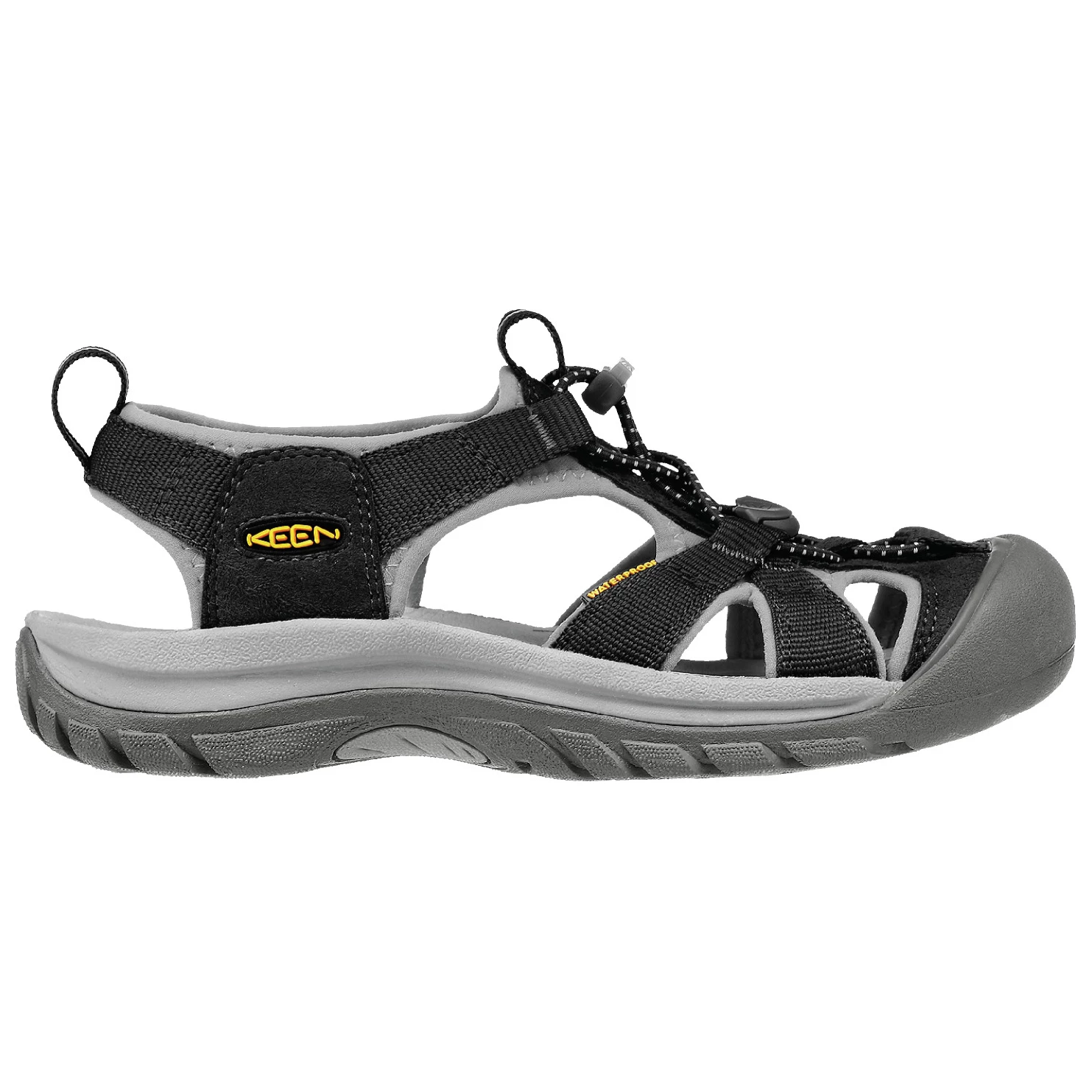 Le matériau extérieur résistant tient longtemps. Le matériau intérieur sèche à nouveau rapidement, ce qui est pratique quand on transpire ou après le contact avec l’eau. Un traitement antibactérien empêche les mauvaises odeurs de se former. La large toe-box est très typique pour Keen et elle permet aux orteils de bouger en toute liberté. Ça favorise une position naturelle du pied. Une semelle intercalaire amortissante se charge du confort durable. La semelle extérieure avec ses crampons multidirectionnels offre un bon grip sur tous les sols. Le pare-pierres est pratique quand on veut marcher sur un terrain caillouteux. Le système de laçage rapide facilite la manipulation. La Venice est une chaussure polyvalente pour la terre et l’eau !